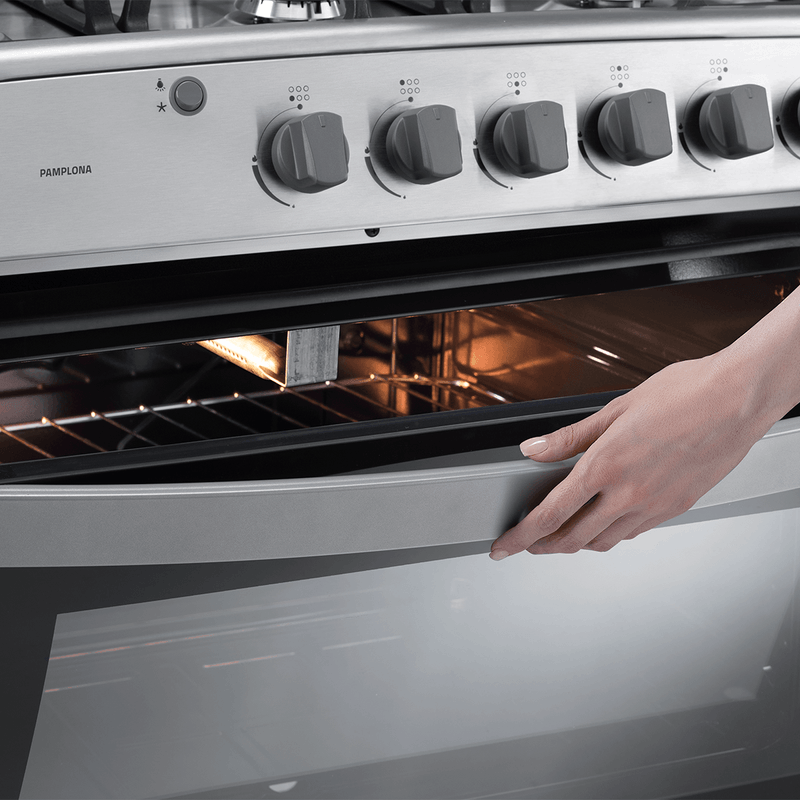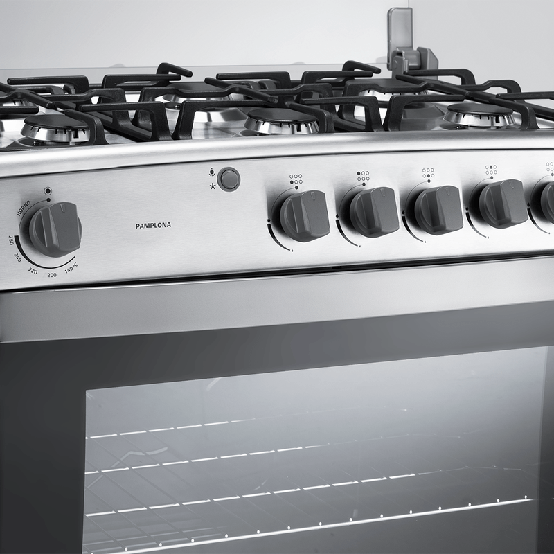 La cocina a gas Pamplona QZ Home 32 pulgadas está pensada para quienes necesitan amplitud y uso simple en el día a día. Sus 6 quemadores permiten cocinar varias preparaciones a la vez, mientras el horno con luz, grill a gas y doble vidrio templado aporta más control. Su tablero de acero inoxidable, parrillas fundidas y encendido electrónico por pulsante completan una propuesta práctica y funcional.