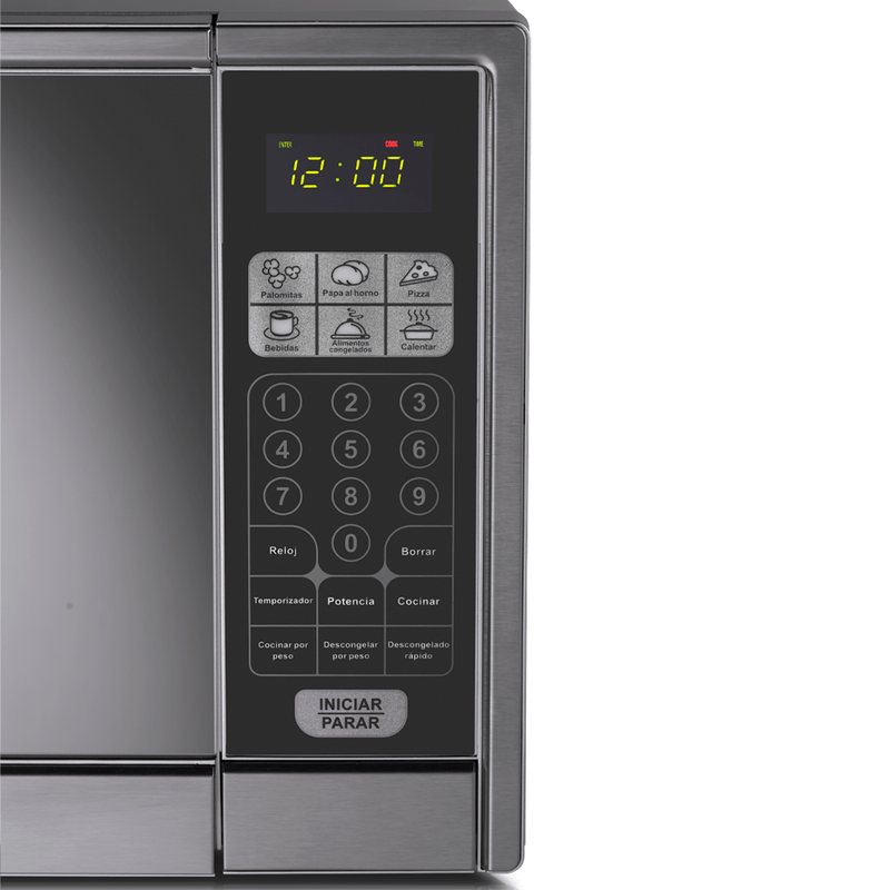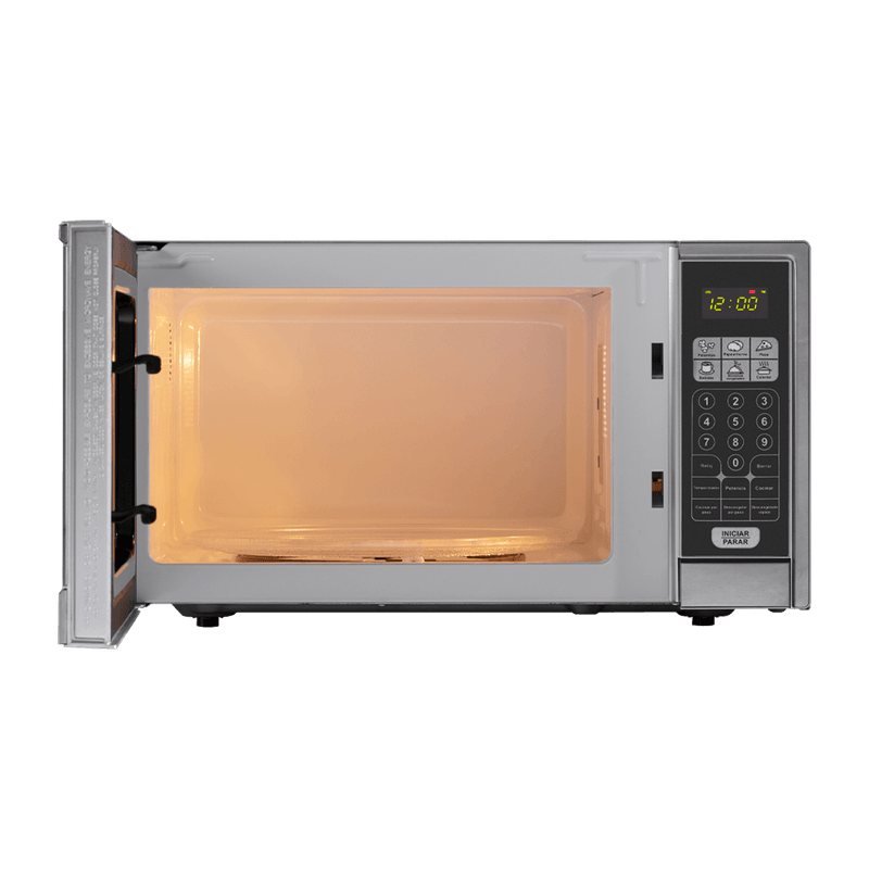 El microondas Indurama MWI-30CR de 30 litros está pensado para quienes buscan espacio y practicidad en la cocina. Incorpora panel digital con reloj, seguro para niños, puerta de vidrio espejo y apertura por botón. Sus funciones automáticas para palomitas, pizza, bebidas y descongelado por peso ayudan a simplificar la rutina, mientras el plato giratorio de cristal favorece una cocción más uniforme.