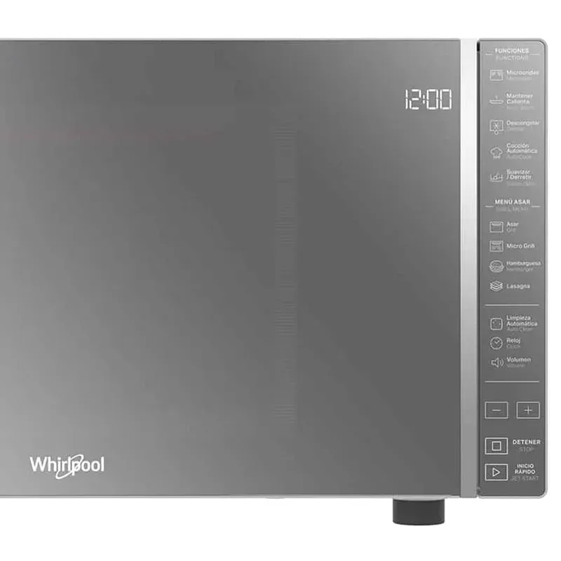 El microondas Whirlpool WM2811D de 30 litros combina microondas de 900 W y grill de 1050 W para calentar, dorar y gratinar. Sus 25 funciones preprogramadas y 7 niveles de potencia te ayudan con pizzas, palomitas o bebidas sin adivinar tiempos. Incluye inicio rápido +30 s, descongelado, función Mantener caliente y limpieza automática, más plato giratorio y acabado espejo que luce bien en tu cocina.