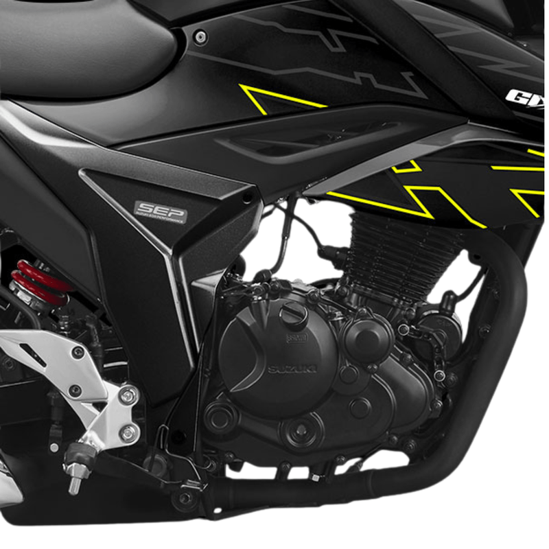 La Suzuki GSX150 FI ABS 5 Velocidades es una moto de estilo deportivo pensada para recorridos diarios con manejo ágil y estable. Equipa motor de 153 cc, 4 tiempos, 1 cilindro, refrigerado por aire e inyección. Incorpora caja de 5 velocidades, arranque eléctrico, freno delantero de disco ABS, freno posterior de disco y suspensión trasera monoshock. Su tablero digital y tanque de 12 litros complementan una conducción practica para ciudad y trayectos frecuentes.