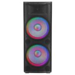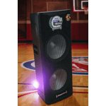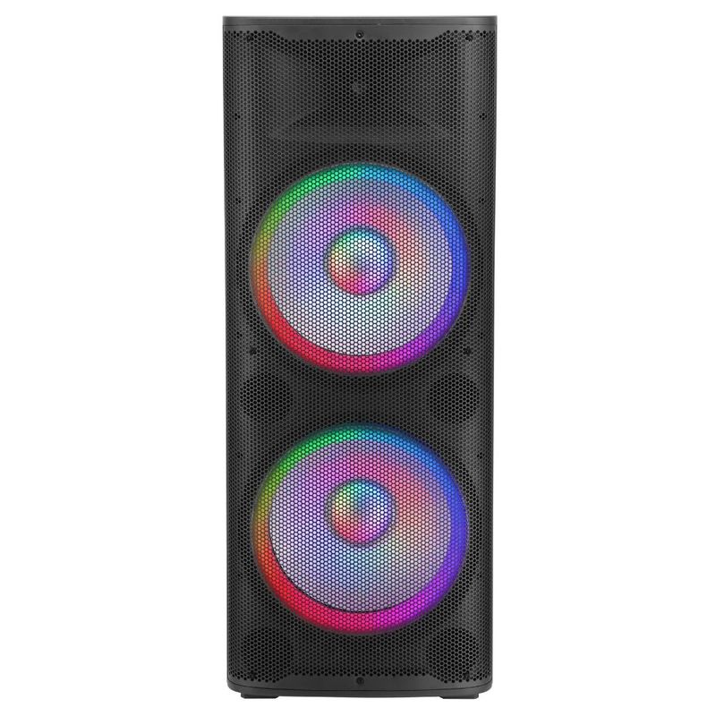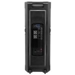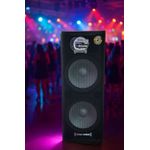 Cabina de sonido con 4.500 W, conectividad Bluetooth / USB / SD / AUX, radio FM, luces LED, micrófono, ruedas y asas para movilidad. Ideal para reuniones, locales o ambientes pequeños.