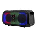 Parlante recargable con Bluetooth, entrada USB/AUX, luces LED RGB, control mediante app “Speaker Pro” y batería de larga duración (6–8 horas), ideal para fiestas pequeñas o reuniones móviles.