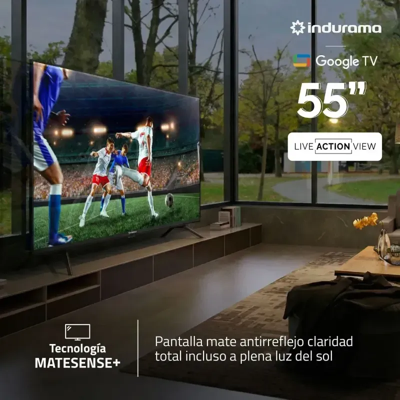 El Indurama 55TISG4FQLED lleva el entretenimiento a otro nivel con pantalla QLED 4K de 55 pulgadas y Google TV para organizar mejor tus apps y contenidos. Integra MEMC para mayor fluidez en escenas de acción, Dolby Vision y Dolby Atmos para una experiencia más inmersiva, además de WiFi doble banda, Bluetooth 5.1 y control por voz. Sus puertos HDMI, USB y LAN facilitan la conexión con barras de sonido, consolas y más.
