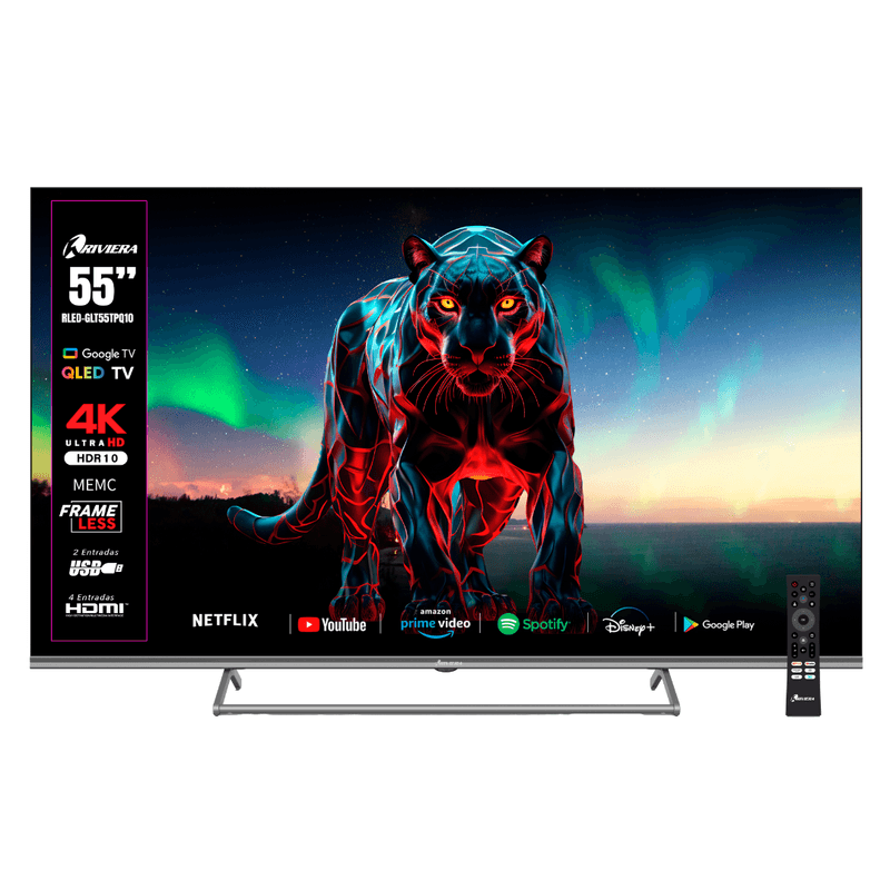Descubre una experiencia de entretenimiento superior con el Riviera RLED-GLT55TPQ10 de 55 en 4K UHD (3840×2160) y HDR10. Gracias al sistema operativo Google TV (Android 14) tendrás acceso directo a apps populares como Netflix, YouTube y Disney+. El Chromecast integrado y la conectividad Bluetooth facilitan transmitir desde tu dispositivo. Diseño “Frame Less” (sin bordes) que aporta estilo al ambiente. Con procesador Arm Cortex A55*4 a 1.5 GHz, 2 GB de RAM y 16 GB de almacenamiento, asegura fluidez en tus búsquedas y navegación. Además incluye múltiples entradas HDMI x4, USB x2, LAN RJ-45, AV In y salida óptica para conectar tus dispositivos y aprovechar al máximo el sonido Dolby. WiFi de doble banda (2.4/5 GHz) y sintonizador digital ISDB-T completan el equipamiento técnico. Ideal para disfrutar películas, juegos y streaming con calidad y estilo en tu hogar.